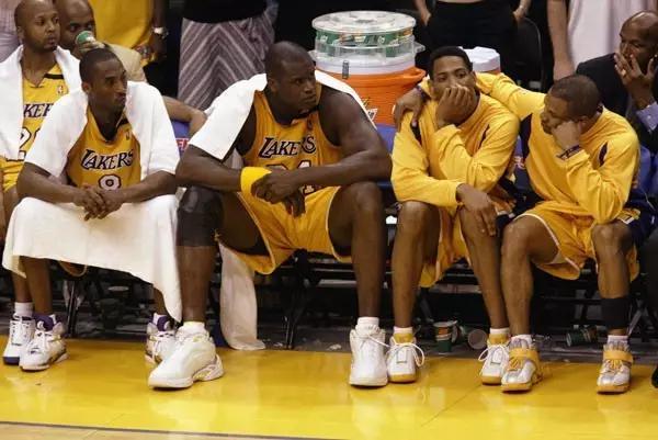 2002-03赛季。第二次复出的老飞人乔丹开始告别巡回演出。科比在主场砍下55分,为老大哥送行。科比说,这是对前辈最好的致敬。可惜的是,13年后,在科比的退役季,没有出现后辈在他面前砍下55分。湖人在季后赛被马刺淘汰,三连冠的辉煌历程到此终结,科比和费舍尔坐在板凳上泪流满面的画面让湖人球迷心碎一地。