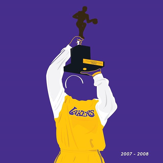 2007-08赛季,在夏天威胁要离开湖人后,科比在赛季中期迎来了生涯最好的帮手保罗-加索尔。湖人时隔四年后再次打进总决赛,但最终以2-4被实力更胜一筹的凯尔特人击败。科比生涯首次也是唯一一次捧起常规赛MVP奖杯,在此之前,凯尔特人名宿拉里-伯德曾经说过一句话:“当我想到科比还没有拿过MVP,我真想把我家里的那些MVP奖杯扔到垃圾堆里。”